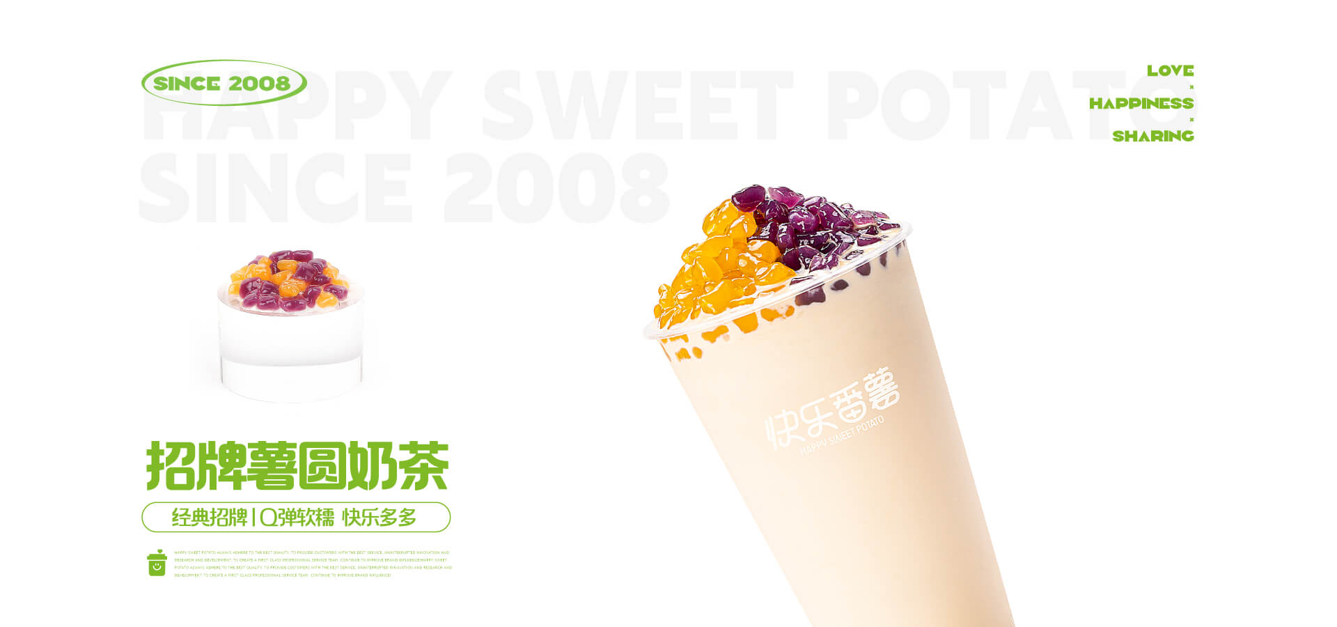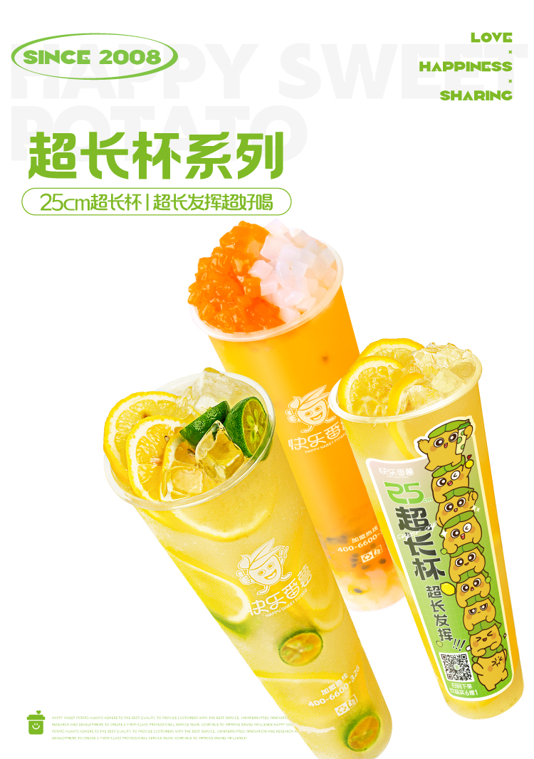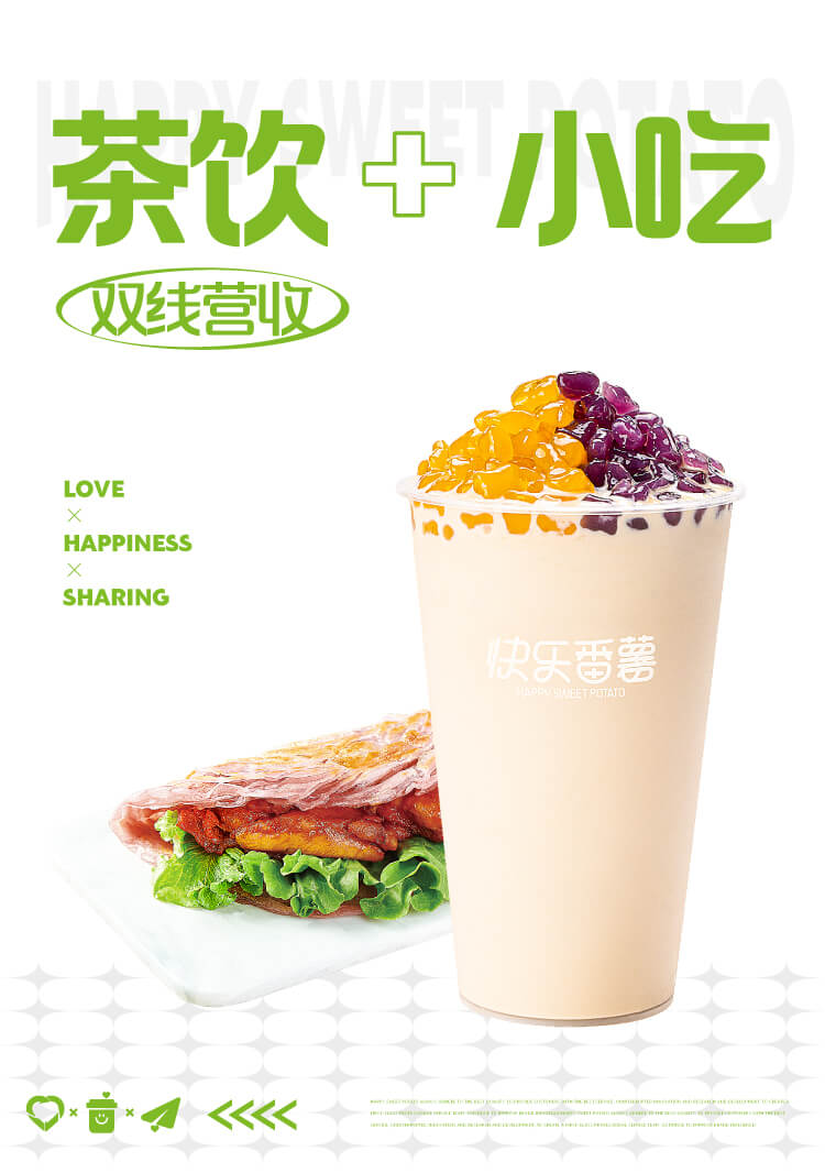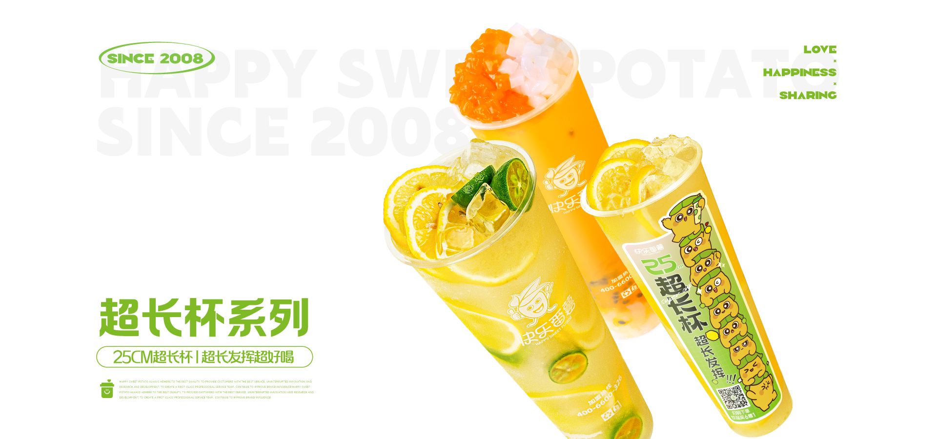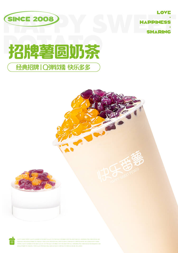 快乐番薯是厦门快乐番薯股份有限公司旗下的奶茶品牌,起源于福建厦门,专业从事番薯、奶茶、水果茶、轻食的研发与销售,把茶与番薯巧妙地融合在一起,独创的招牌薯圆系列奶茶,以其软糯香甜深受广大消费者喜爱。经过十多年的发展,快乐番薯已在全国28个省区扎根,加盟店遍布223个城市。同时快乐番薯还提出并牵头制定福建省连锁协会团体标准——《现制奶茶》和《现制奶茶操作规范》,鼎力促进奶茶行业的健康发展!